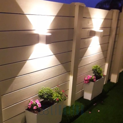 Ngoài mẫu đèn vách hắt tường vuông thì mẫu đèn vách 6 tia sáng cũng là mẫu đèn phổ biến nhất nhì hiện nay. Đèn LED IP 66 dùng được ngoài trời, mẫu đầu hắt ra 3 tia sáng. Mỗi tia công suất 1W. Công suất tổng của đèn 6 tia là 6W.